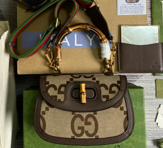 GUCCI 구찌 675797 뱀부 1947 GG 점보 캔버스 스몰 핸드백
